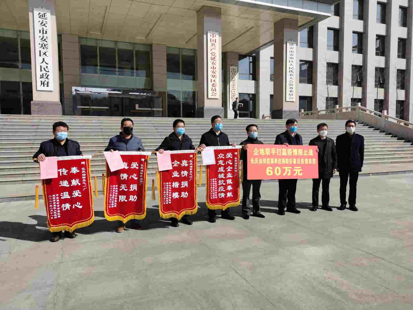 西部決策網(wǎng)訊 企地同心,共抗疫情。2月18日,長(zhǎng)慶油田采油一廠(chǎng)、采油三廠(chǎng)、采油四廠(chǎng)、采氣一廠(chǎng)、采氣六廠(chǎng)等駐延單位,向延安市安塞區(qū)、志丹縣政府捐贈(zèng)防疫資金各60萬(wàn)元,用實(shí)際行動(dòng)體現(xiàn)國(guó)有企業(yè)的責(zé)任與擔(dān)當(dāng)。