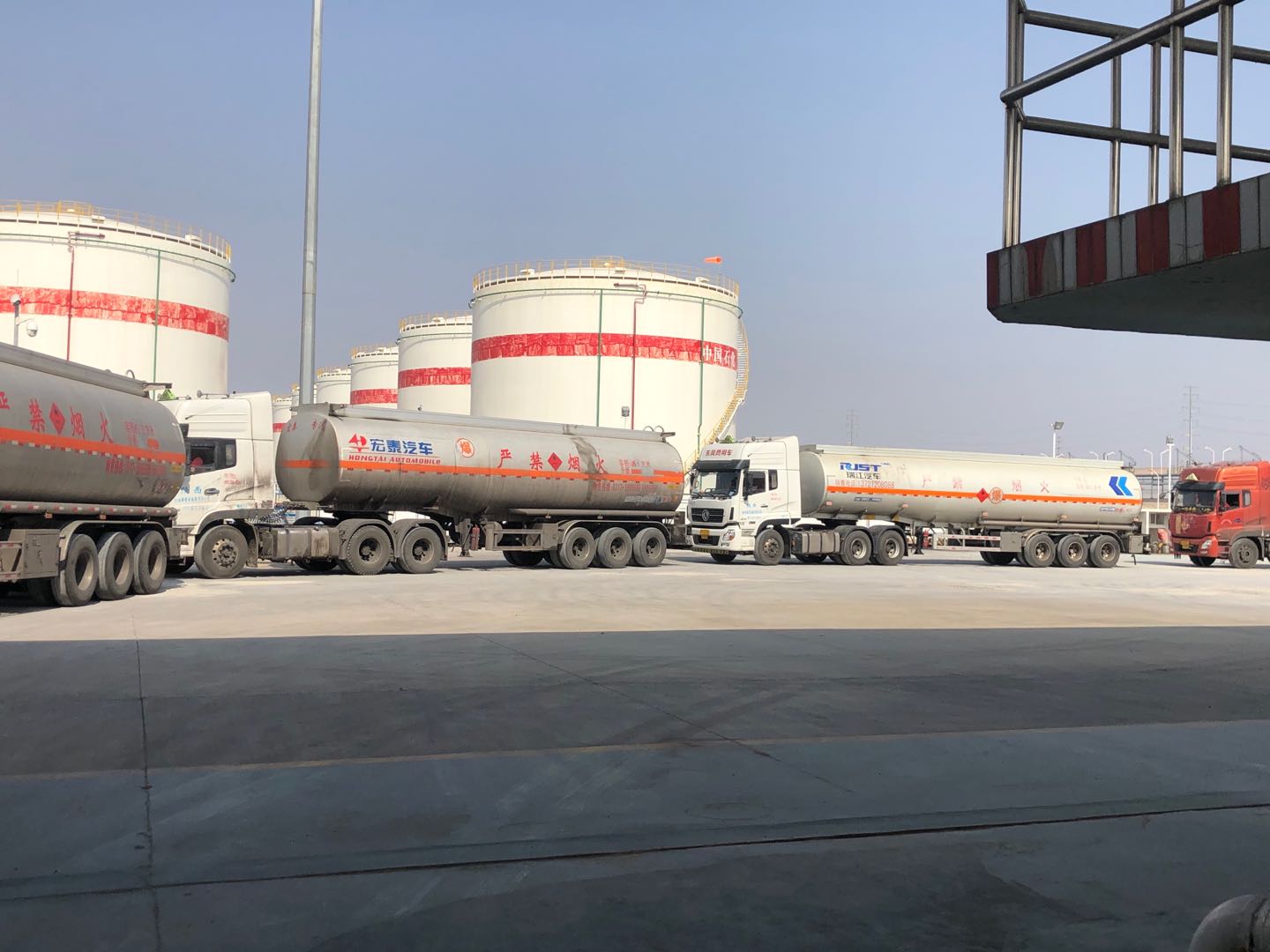 已近零時(shí),空曠的付油區(qū)氣溫早已降至零攝氏度以下。此時(shí),油庫的發(fā)油作業(yè)依然沒有停止……油庫的幾名工友,頭戴紅色安全帽、身著藍(lán)色工裝,對(duì)入庫油庫油車進(jìn)行安全檢查,驗(yàn)票員仔細(xì)核對(duì)著票據(jù)信息,引導(dǎo)車輛正確??浚粩嗵崾抉{駛員注意操作安全。