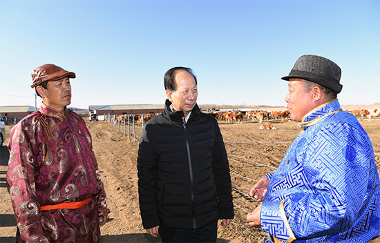 3月23日,自治區(qū)黨委書(shū)記、人大常委會(huì)主任石泰峰來(lái)到赤峰市克什克騰旗達(dá)來(lái)諾日鎮(zhèn)崗更嘎查西門(mén)塔爾牛養(yǎng)殖專(zhuān)業(yè)合作社,了解帶動(dòng)已脫貧戶穩(wěn)定長(zhǎng)效增收情況。內(nèi)蒙古日?qǐng)?bào)社融媒體記者 袁永紅 攝