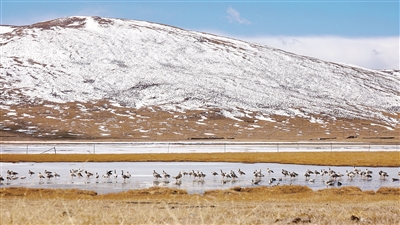 隆寶是青海省第一個國家級自然保護區(qū)。1984年建站之初只有22只黑頸鶴,如今已經(jīng)有超過216只在這里棲息。普布說,隆寶保護區(qū)的濕地東西長23千米,南北寬5千米,平均海拔4100多米,海拔高、地域?qū)拸V、水汽環(huán)境適宜,因此成為很多水鳥遷徙途中的驛站。