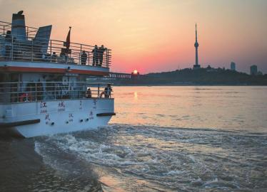 4月8日,一對(duì)情侶在長(zhǎng)江客運(yùn)輪渡上欣賞江景。新華社記者 沈伯韓 攝