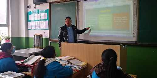 公保多杰在玉樹(shù)州民族中學(xué)上課。 楊陽(yáng)攝