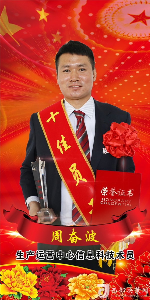 和他一起共事多年的同事應(yīng)該都知道,也許“榮譽(yù)”二字對(duì)周奮波來說,已經(jīng)是習(xí)以為常。自參加工作至今,他所榮獲的“安全先進(jìn)個(gè)人”“四優(yōu)共產(chǎn)黨員”“優(yōu)秀個(gè)人”“安全先進(jìn)班組”和年度創(chuàng)新獎(jiǎng)項(xiàng)等公司級(jí)榮譽(yù)可以說是一攬盡收,但是這次被表彰為“十佳”員工,讓他始料未及,“十佳”對(duì)他而言又是那么可望不可即,直至從領(lǐng)獎(jiǎng)臺(tái)下來手捧獎(jiǎng)杯、證書拍宣傳照的時(shí)候,顯的分外緊張激動(dòng)的周奮波說“這份榮譽(yù)讓我感覺到壓力滿滿”。