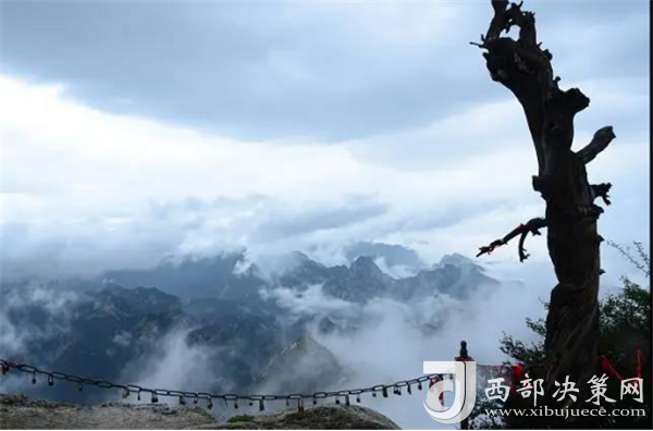 南峰落雁峰 為華山之巔,天近咫尺,星斗可摘。舉目環(huán)視,但見云海如帛如綿,盡收眼底。