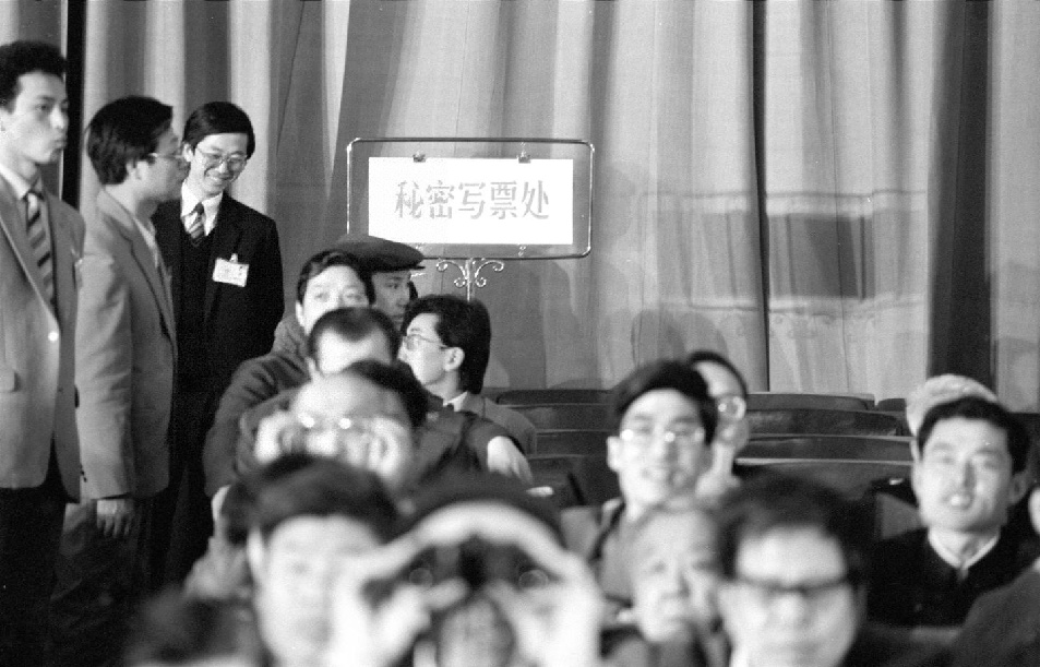 1988年4月,七屆全國人大一次會(huì)議第六次全體會(huì)議,投票選舉國家機(jī)構(gòu)領(lǐng)導(dǎo)人。圖為首次設(shè)立的秘密寫票處。