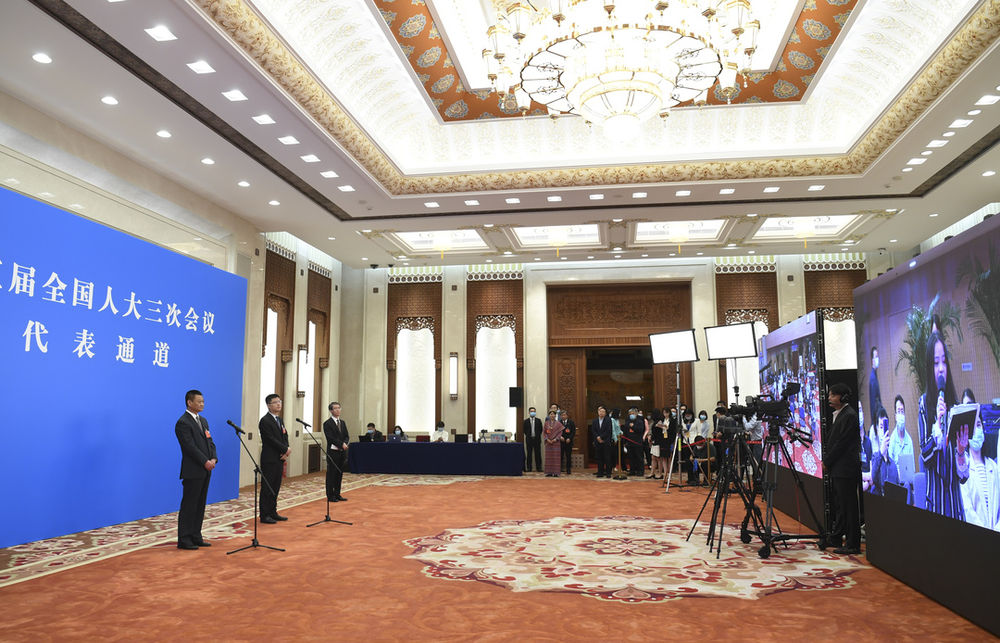 這是全國(guó)人大代表通過(guò)網(wǎng)絡(luò)視頻方式接受采訪。(新華社記者金良快 攝)
