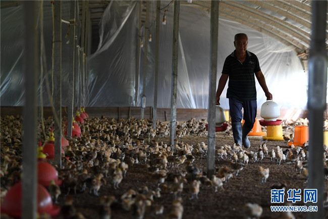 家住安徽省肥西縣花崗鎮(zhèn)楊灣村的黃榮春多年前外出打工時意外受傷,妻子患病失去勞動能力。2014年,黃榮春一家被確定為建檔立卡貧困戶。雖然身體不太好,但是黃榮春頭腦靈活、吃苦能干。在扶貧干部的幫扶下,黃榮春申請到5萬元貼息貸款,發(fā)展白鵝、土雞等家禽養(yǎng)殖。從幾百只到幾萬只,從單一養(yǎng)殖到多元化養(yǎng)殖,他的家禽養(yǎng)殖業(yè)越做越大,2019年,黃榮春靠養(yǎng)雞賺了4萬元。如今,黃榮春已經(jīng)脫貧,成了當(dāng)?shù)赜忻酿B(yǎng)殖能手,并帶動村里有勞動能力的貧困戶發(fā)展特色養(yǎng)殖。