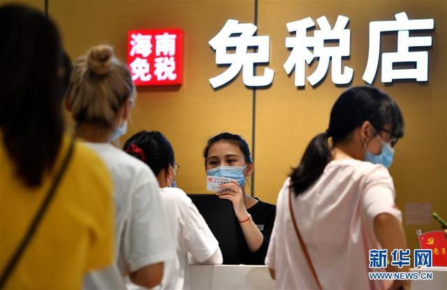 6月29日,??谌赵聫V場(chǎng)免稅店工作人員在工作。新華社記者 郭程 攝