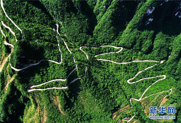 7月3日拍攝的下莊村(無(wú)人機(jī)照片)。地處秦巴山區(qū)腹地的重慶市巫山縣竹賢鄉(xiāng)下莊村被稱作“天坑村”。多年來(lái),全村人憑借“不等不靠,幸福要自己造”的精神,走出了自己的一條幸福路。曾經(jīng),四面絕壁猶如一圈難以跨越的高墻,將下莊人緊緊困在里面。閉塞的交通束縛了人們掙脫貧困和封閉的雙手,阻擋著全村通向文明和富裕的腳步。不甘心“坐井觀天”的下莊人,用生命挑戰(zhàn)懸崖,村民拿著鐵釬和鐵錘,在懸崖上鑿出一條“通天路”,徹底改變了村莊的命運(yùn)。當(dāng)?shù)卣群髮?duì)下莊村的道路進(jìn)行了加寬、硬化加固,并加裝了護(hù)欄。如今,從下莊出發(fā)到縣城的時(shí)間縮短到一個(gè)半小時(shí)左右。通路后,村里的面貌很快發(fā)生了變化。2015年,下莊村完成整村脫貧。如今,下莊村建立了果蔬種植合作社,巫山縣在這里建立了下莊精神陳列館,建成了風(fēng)貌統(tǒng)一的鄉(xiāng)村民宿,幫助下莊村發(fā)展生態(tài)文旅產(chǎn)業(yè)。曾經(jīng)的“天坑村”靠著自強(qiáng)不息的精神,道路越走越寬。新華社記者王全超攝
