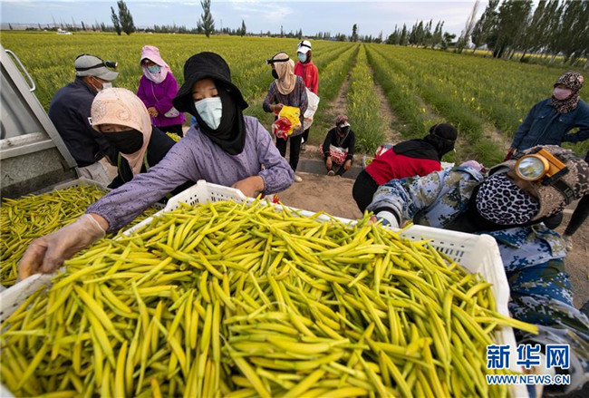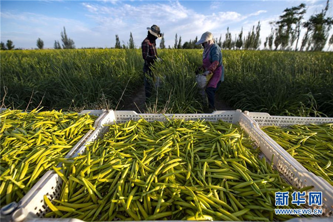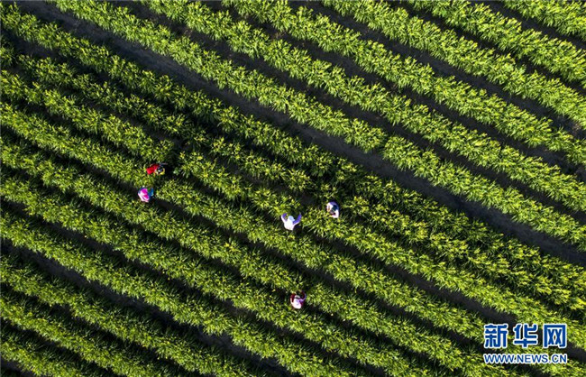 近日,寧夏鹽池縣惠安堡鎮(zhèn)的黃花菜進入采摘季,從空中望去,成片的黃花菜地碧波萬頃。近年來,鹽池縣將黃花菜產(chǎn)業(yè)作為脫貧攻堅的特色產(chǎn)業(yè),依托滴灌等技術(shù)擴大種植規(guī)模,培育專業(yè)合作社、深加工企業(yè),打造黃花菜產(chǎn)業(yè)鏈條。目前,鹽池縣黃花菜種植面積達8.1萬畝,產(chǎn)業(yè)年產(chǎn)值2.5億元,直接帶動全縣3000多黃花菜種植戶戶均年增收2萬多元。在黃花菜40多天的采摘期內(nèi),每天還可帶動1.5萬余人務(wù)工增收。