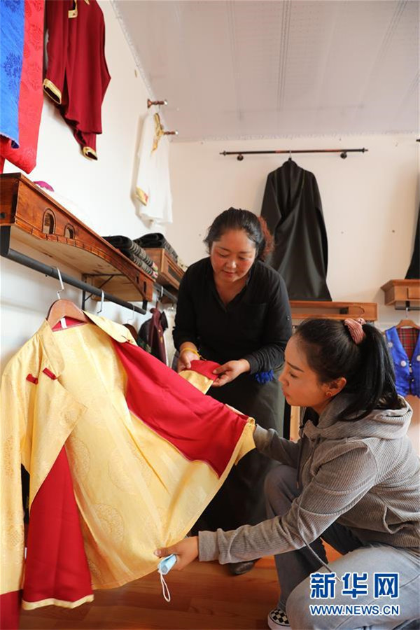 7月23日,在甘肅省甘南藏族自治州夏河縣桑科鎮(zhèn)崗岔村的扶貧車(chē)間內(nèi),卓瑪吉(右)和扶貧車(chē)間負(fù)責(zé)人研究成衣款式。崗岔村是甘肅省甘南藏族自治州夏河縣??奇?zhèn)的一個(gè)牧業(yè)村,平均海拔3000米以上。2018年,在夏河縣文明辦工作的卓瑪吉開(kāi)始擔(dān)任駐村幫扶工作隊(duì)隊(duì)長(zhǎng),每年都有200多天待在草原上。兩年來(lái),卓瑪吉帶領(lǐng)大家開(kāi)辦扶貧車(chē)間,發(fā)展特色產(chǎn)業(yè),聯(lián)系勞務(wù)輸出。為了讓村民更全面地了解精準(zhǔn)扶貧政策,卓瑪吉登門(mén)宣講政策。為了提高村容村貌,卓瑪吉發(fā)動(dòng)大家開(kāi)展廁所革命和庭院環(huán)境評(píng)比,積極響應(yīng)甘南藏族自治州“全域無(wú)垃圾”創(chuàng)建行動(dòng)。她還從縣城請(qǐng)來(lái)醫(yī)生,為村民舉辦健康講座,在全村婦女中開(kāi)展“兩癌篩查”。如今,崗岔村變成了干凈、整齊、富裕、美麗的生態(tài)文明村,提前實(shí)現(xiàn)了整村脫貧。談起心愿,卓瑪吉說(shuō):“要讓草原和草原上的人都變得更美。”新華社發(fā)(杜哲宇攝)