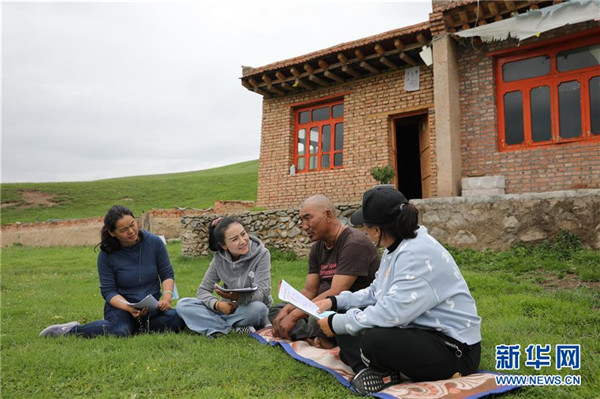 7月23日,在甘肅省甘南藏族自治州夏河縣??奇?zhèn)崗岔村,卓瑪吉(左二)和駐村幫扶工作隊(duì)隊(duì)員一起入戶了解村民巴桑一家的生產(chǎn)生活情況。崗岔村是甘肅省甘南藏族自治州夏河縣??奇?zhèn)的一個(gè)牧業(yè)村,平均海拔3000米以上。2018年,在夏河縣文明辦工作的卓瑪吉開(kāi)始擔(dān)任駐村幫扶工作隊(duì)隊(duì)長(zhǎng),每年都有200多天待在草原上。兩年來(lái),卓瑪吉帶領(lǐng)大家開(kāi)辦扶貧車(chē)間,發(fā)展特色產(chǎn)業(yè),聯(lián)系勞務(wù)輸出。為了讓村民更全面地了解精準(zhǔn)扶貧政策,卓瑪吉登門(mén)宣講政策。為了提高村容村貌,卓瑪吉發(fā)動(dòng)大家開(kāi)展廁所革命和庭院環(huán)境評(píng)比,積極響應(yīng)甘南藏族自治州“全域無(wú)垃圾”創(chuàng)建行動(dòng)。她還從縣城請(qǐng)來(lái)醫(yī)生,為村民舉辦健康講座,在全村婦女中開(kāi)展“兩癌篩查”。如今,崗岔村變成了干凈、整齊、富裕、美麗的生態(tài)文明村,提前實(shí)現(xiàn)了整村脫貧。談起心愿,卓瑪吉說(shuō):“要讓草原和草原上的人都變得更美。”新華社發(fā)(杜哲宇攝)