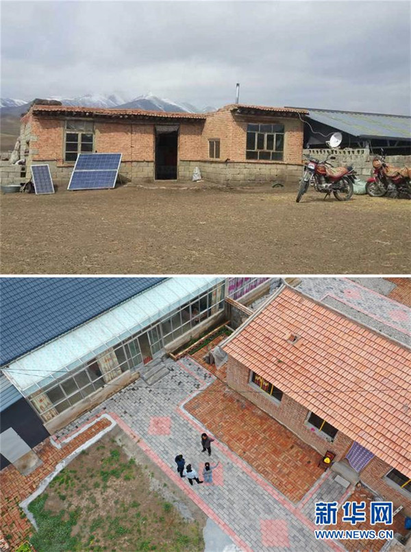 拼版照片:上圖為崗岔村村民才讓扎西在易地扶貧搬遷之前居住的房子(資料照片)。下圖為才讓扎西易地扶貧搬遷后的新家(7月23日攝,無(wú)人機(jī)照片)。新華社發(fā)(杜哲宇攝)崗岔村是甘肅省甘南藏族自治州夏河縣??奇?zhèn)的一個(gè)牧業(yè)村,平均海拔3000米以上。2018年,在夏河縣文明辦工作的卓瑪吉開(kāi)始擔(dān)任駐村幫扶工作隊(duì)隊(duì)長(zhǎng),每年都有200多天待在草原上。兩年來(lái),卓瑪吉帶領(lǐng)大家開(kāi)辦扶貧車(chē)間,發(fā)展特色產(chǎn)業(yè),聯(lián)系勞務(wù)輸出。為了讓村民更全面地了解精準(zhǔn)扶貧政策,卓瑪吉登門(mén)宣講政策。為了提高村容村貌,卓瑪吉發(fā)動(dòng)大家開(kāi)展廁所革命和庭院環(huán)境評(píng)比,積極響應(yīng)甘南藏族自治州“全域無(wú)垃圾”創(chuàng)建行動(dòng)。她還從縣城請(qǐng)來(lái)醫(yī)生,為村民舉辦健康講座,在全村婦女中開(kāi)展“兩癌篩查”。如今,崗岔村變成了干凈、整齊、富裕、美麗的生態(tài)文明村,提前實(shí)現(xiàn)了整村脫貧。談起心愿,卓瑪吉說(shuō):“要讓草原和草原上的人都變得更美。”新華社發(fā)