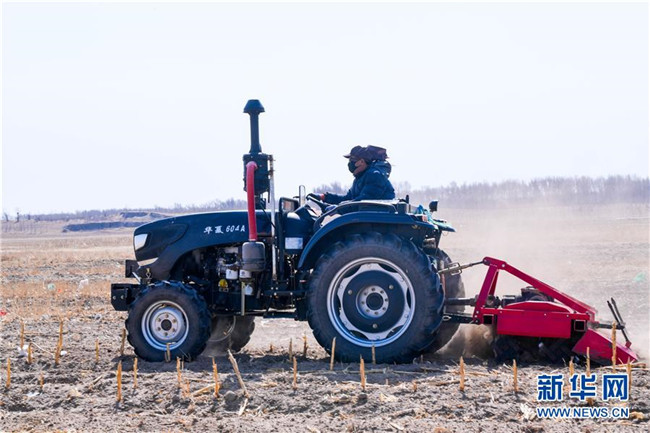吉林省通榆縣邊昭鎮(zhèn)的村民在五井子村原址復(fù)墾的農(nóng)田上犁地(3月31日攝)。 新華社發(fā)(顏麟蘊 攝)