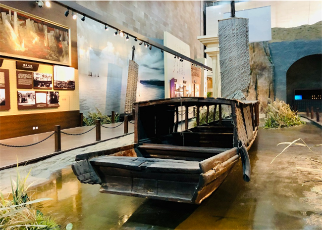 △渡江戰(zhàn)役紀念館內的渡船