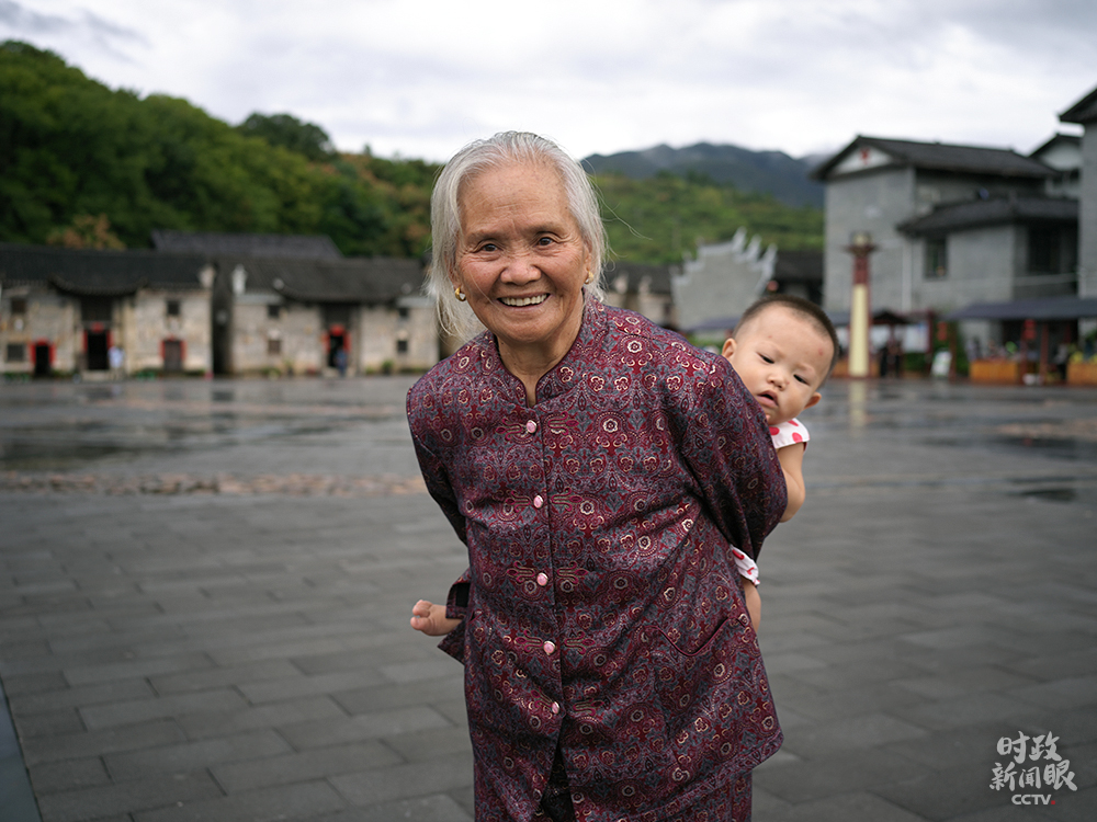 △16日下午,總書記離開沙洲村前,82歲的曹戰(zhàn)蘭老人一直緊緊握住總書記的手。(總臺(tái)央視記者彭漢明拍攝)