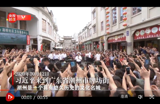 10月12日下午,正在廣東考察的習(xí)近平總書記來到潮州古城,看商鋪、問物價,同當(dāng)?shù)厝罕娪H切交流,了解歷史文化街區(qū)保護(hù)和復(fù)商復(fù)市等情況。