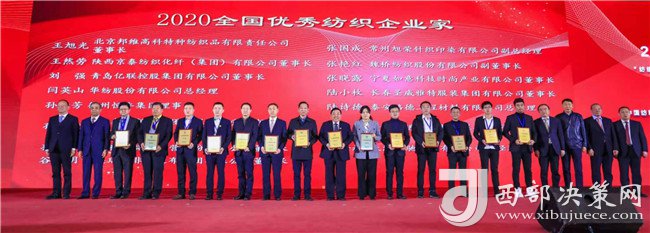 在2020年中國紡織企業(yè)家大會上,陜西京泰集團董事長王然勞受到中國紡聯(lián)黨委書記兼秘書長高勇、中國紡織工業(yè)聯(lián)合會孫瑞哲會長、夏令敏副會長、中國紡織工業(yè)企業(yè)管理協(xié)會謝青常務副會長等領導的接見并給予頒獎。