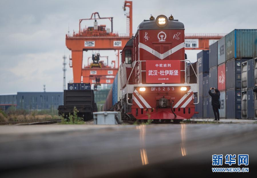 開往德國杜伊斯堡的中歐(武漢)班列從中鐵聯(lián)集武漢中心站駛出(2020年3月28日攝)。這是自疫情防控以來,從武漢開出的首趟中歐班列,標志著中歐班列(武漢)恢復常態(tài)化運營。新華社記者 肖藝九 攝