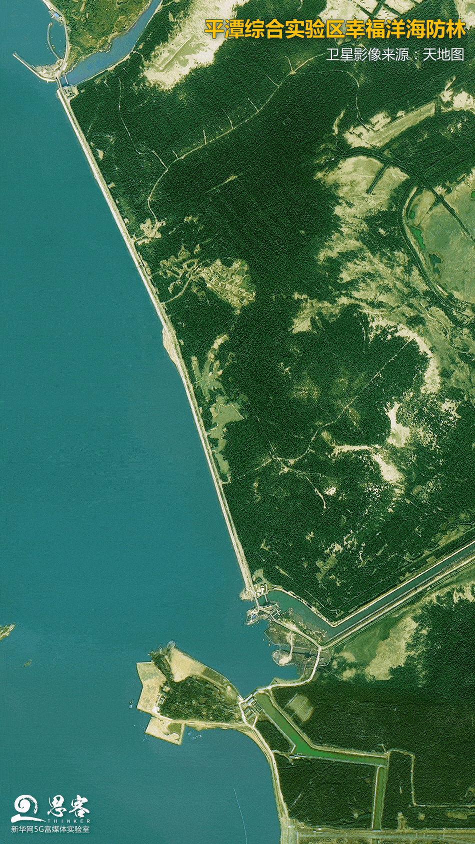 ▲平潭綜合實驗區(qū)幸福洋海防林。衛(wèi)星影像來源:天地圖
