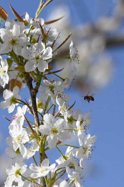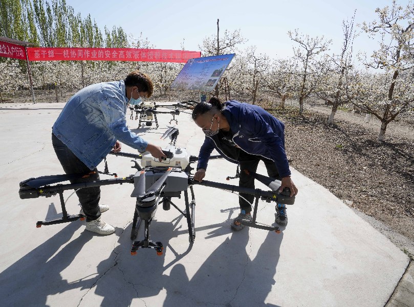 在新疆南疆等地,梨樹花期很短,且往往伴隨沙塵天氣,梨樹授粉作為梨產(chǎn)業(yè)發(fā)展中最為關(guān)鍵的一環(huán),以往通過人工授粉或者蜜蜂授粉進(jìn)行。隨著人工成本不斷增加以及產(chǎn)業(yè)健康發(fā)展需要,以蜜蜂采集的高活性授粉用花粉聯(lián)合無人機(jī)噴施的蜂機(jī)協(xié)同作業(yè)高效液體授粉技術(shù)開始出現(xiàn)。