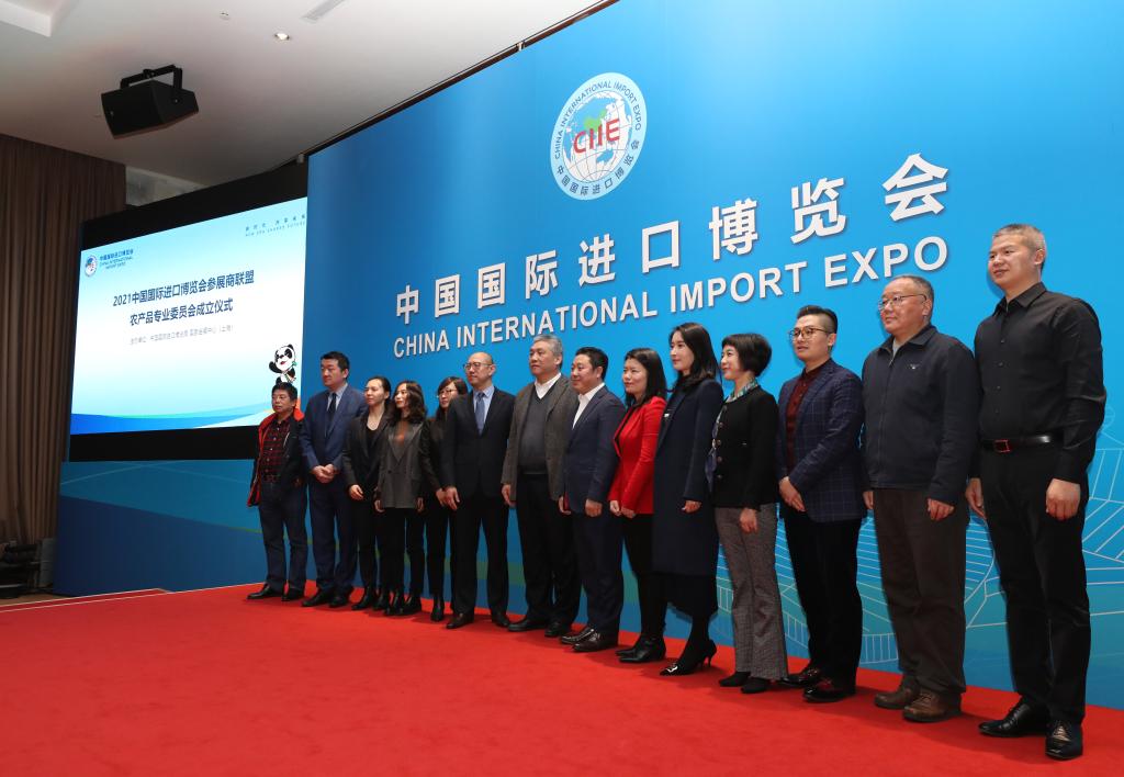 1月20日,進(jìn)博會(huì)參展商聯(lián)盟農(nóng)產(chǎn)品專業(yè)委員會(huì)成員企業(yè)代表與嘉賓在專委會(huì)成立儀式上合影。新華社記者方喆 攝