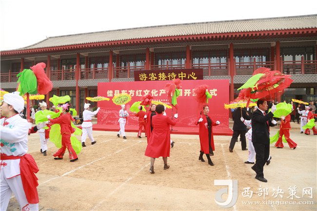 開園儀式上,彩旗飄揚,鑼鼓喧天。上午10時30分,佳縣縣委書記劉生勝隆重宣布:“東方紅文化產(chǎn)業(yè)園正式開園,歷時建設多年的東方紅文化產(chǎn)業(yè)園正式啟動,標志著佳縣紅色文化旅游發(fā)展邁上了新臺階。”