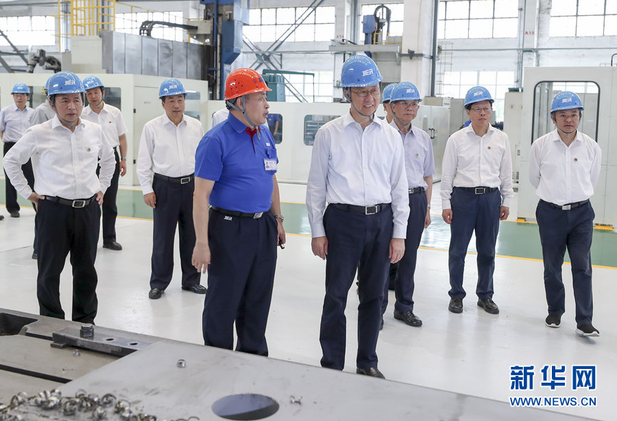 7月5日至6日,中共中央政治局常委、國務(wù)院副總理韓正先后在山東東營、濟南調(diào)研。這是7月6日,韓正在濟南二機床集團有限公司考察企業(yè)生產(chǎn)運營和技術(shù)研發(fā)情況。新華社記者 姚大偉 攝