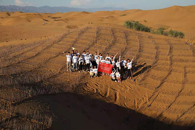 在6年的時(shí)間里,劉智卓從十個(gè)人的小團(tuán)隊(duì)開始干起,逐漸創(chuàng)立綠格公益團(tuán),帶領(lǐng)更多的人在甘肅、內(nèi)蒙等地參與治沙,“交大林”開始在大漠扎根。劉智卓認(rèn)為,“一個(gè)人的力量或者一個(gè)學(xué)校的力量治理沙漠還是有限的,要發(fā)動越來越多的學(xué)生參與進(jìn)去,才有可能真正做出一些貢獻(xiàn)。”因而,招募志愿者的范圍也逐漸拓展到更多的高校,并且和浙江大學(xué)、華東師范大學(xué)、四川大學(xué)等高校社團(tuán)開展合作,帶動更多的人參與到治沙行動當(dāng)中,截至今年,綠格公益團(tuán)招募的志愿者已經(jīng)超過一千人。