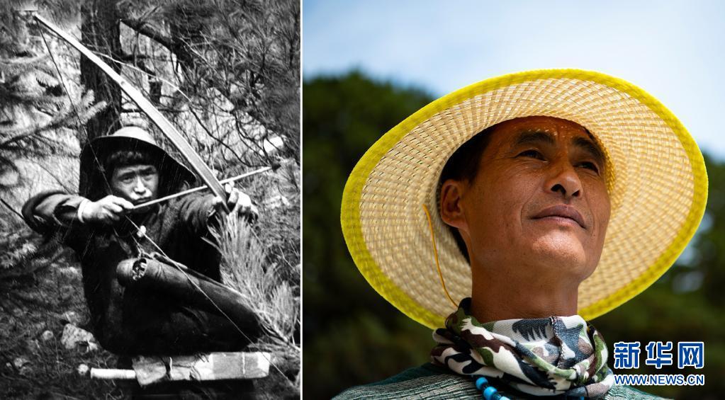 拼版照片: 左圖是20世紀50年代瓊林村的獵手達前(資料照片);右圖是2021年6月19日拍攝的林芝米林縣瓊林村村民達吉,結束打獵生涯,成為養(yǎng)殖戶和護林員(新華社記者晉美多吉攝)。新華社發(fā)
