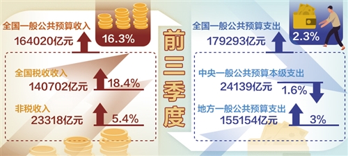 前三季度全國(guó)一般公共預(yù)算收入同比增長(zhǎng)16.3%——