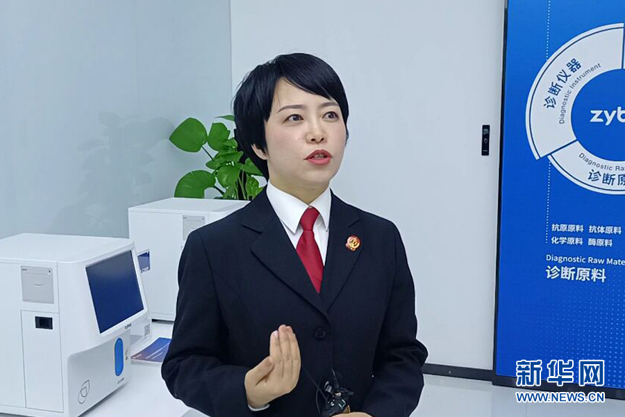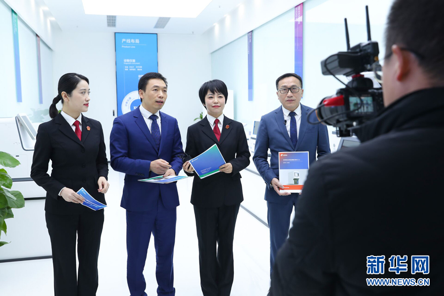 圖為直播中,企業(yè)技術負責人介紹企業(yè)的相關產(chǎn)品以及知識產(chǎn)權保護相關情況。新華網(wǎng)發(fā)(吳川嬌 攝)
