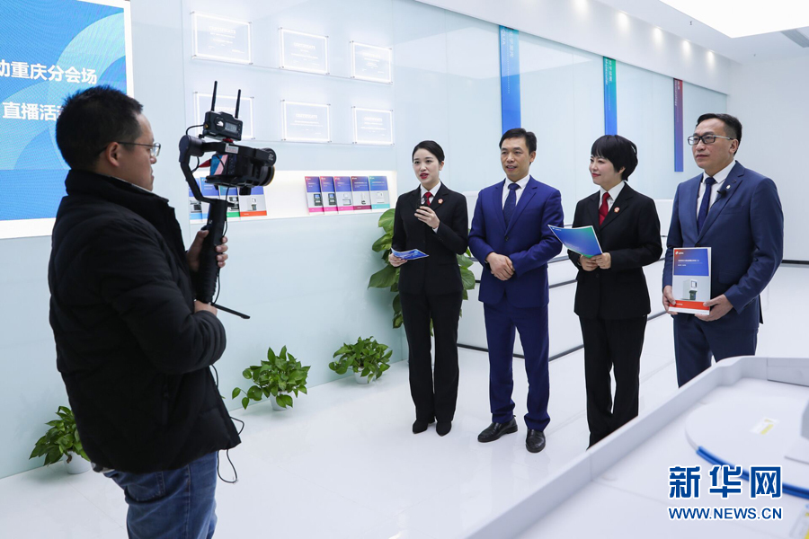 重慶知識產(chǎn)權法庭副庭長譚穎在直播中向網(wǎng)友普及知識產(chǎn)權保護的相關法律知識。新華網(wǎng)發(fā)(吳川嬌 攝)