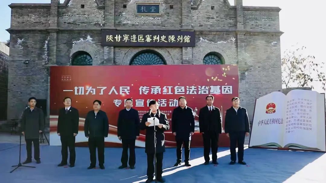 11月30日下午,由司法部普法與依法治理局指導(dǎo),中共陜西省委依法治省辦、省委普法辦、省司法廳主辦,延安市中級人民法院、延安市司法局承辦的“一切為了人民—傳承紅色法治基因”專題宣傳活動(dòng)在陜甘寧邊區(qū)高等法院舊址舉辦。