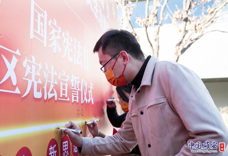 “我宣誓:忠于中華人民共和國憲法,維護憲法權(quán)威,履行法定職責……”當日上午,在雄安市民服務中心會議中心門前,新區(qū)各部門以及雄安集團工作人員代表右手握拳,進行莊嚴宣誓。