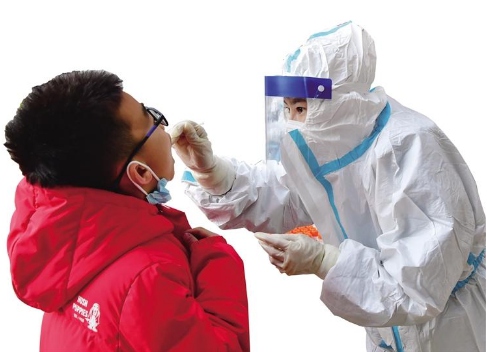 圖為12月18日,西安高新區(qū)丈八街道唐灃社區(qū)核酸檢測點(diǎn)的醫(yī)務(wù)人員在進(jìn)行核酸采樣。本報記者 杜瑋攝
