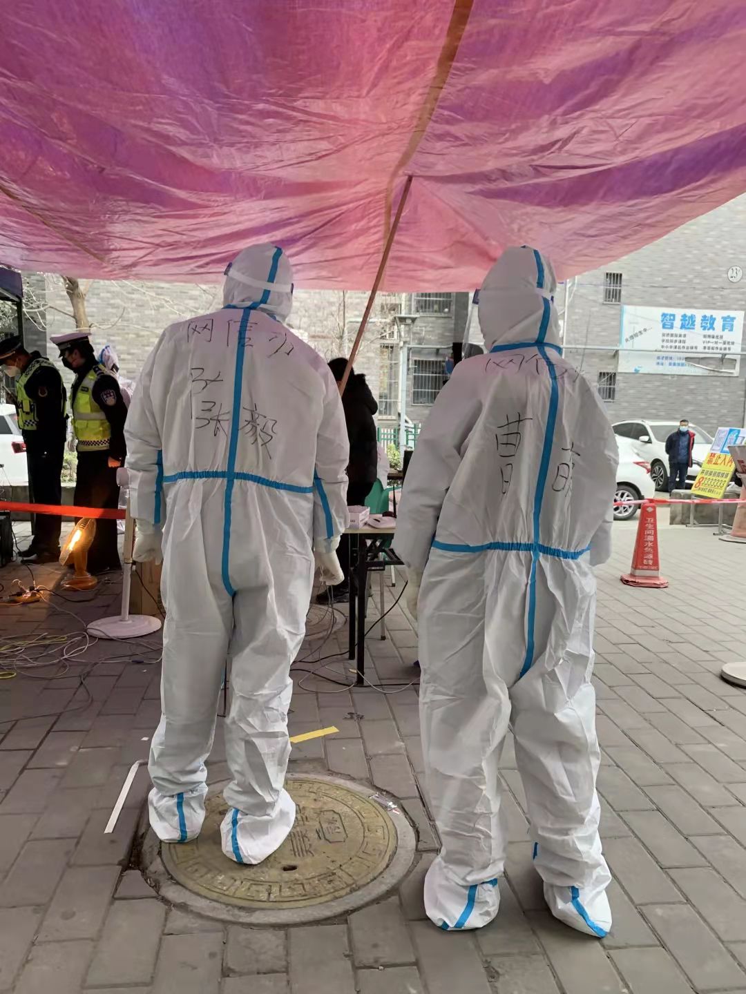 就在隔壁美美佳園小區(qū),張毅、曹萌、胡迪、劉春艷、胡振東、徐晨楊等人也早早鉆進(jìn)了防護(hù)服,從學(xué)習(xí)到上崗、從開始到投入,絲毫沒有停歇,午餐時間成了唯一交流的機(jī)會,在微信群里工作的照片就像是默契的鏡子:“已看不清是誰的臉,卻能彼此知道你是誰。”