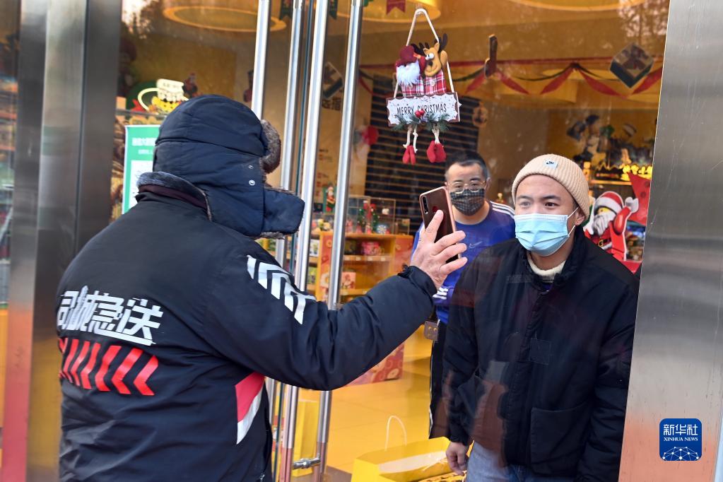 12月26日,市民在西安市朱雀路一家超市購(gòu)買(mǎi)生活物資。新華社記者 陶明 攝