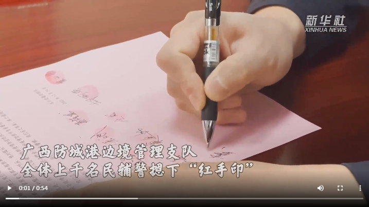 廣西防城港邊境管理支隊(duì)上千名民輔警集體遞交“戰(zhàn)疫請戰(zhàn)書”,主動要求向抗疫最前線靠攏。他們繼續(xù)選擇逆行,奔赴國門口岸、邊境卡口、村寨社區(qū),始終奮戰(zhàn)在最前線,維護(hù)檢測現(xiàn)場秩序,保障救援力量通行,強(qiáng)化邊境巡邏防控。“請戰(zhàn)書”上的一個(gè)個(gè)“紅手印”,見證忠誠。