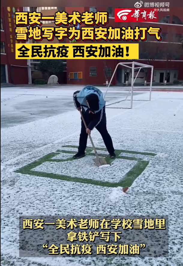 西安一美術(shù)老師在學(xué)校雪地里