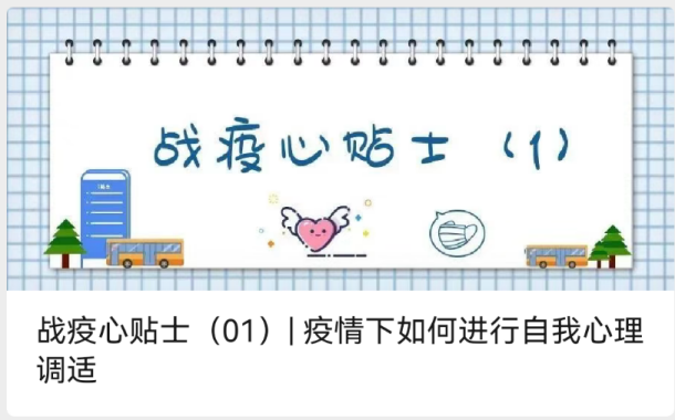 疫情防控期間,考慮到學(xué)生學(xué)習(xí)生活場所受限,學(xué)生情緒容易受到環(huán)境影響。心理健康教育中心通過新媒體開展“戰(zhàn)疫心貼士”、心語FM專欄,每天為該校學(xué)生推送疫情心理調(diào)節(jié)小妙招及各類心理援助資源。相繼發(fā)布的15篇推文有效地幫助學(xué)生們掌握了有關(guān)疫情的心理健康知識,學(xué)會了自我健心減壓,引導(dǎo)他們理性對待疫情,不恐慌、不信謠、不傳謠,保持良好心理狀態(tài)。