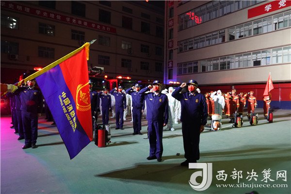 大家宣誓:“堅(jiān)決履行國家綜合性消防救援隊(duì)伍的神圣使命,英勇頑強(qiáng),不怕犧牲……為維護(hù)人民生命財(cái)產(chǎn)安全和社會穩(wěn)定,貢獻(xiàn)自己的力量!”支隊(duì)舉行疫情防控專業(yè)處置隊(duì)出征儀式后,兩支隊(duì)伍深夜奔赴疫情防控一線戰(zhàn)場,守護(hù)延安城。
