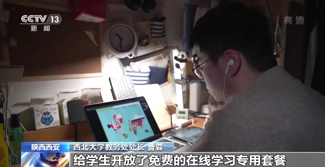 西北大學(xué)教務(wù)處處長 曹蓉:我們擔(dān)心網(wǎng)絡(luò)卡頓,西北大學(xué)的信息化處充分挖掘網(wǎng)絡(luò)資源,擴容了帶寬,給學(xué)生開放了免費的在線學(xué)習(xí)專用套餐。