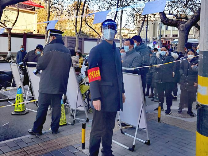 自從12月21日至今,王曉軍幾乎天天深入抗疫一線,以志愿者的身份助力抗疫,從未休息過一天,什么工作都干過,上門核實業(yè)主家里的人員情況,最近是否都做了核酸,綠碼顯示情況,是否還出去上班,是否有生活困難等等一系列繁瑣細微的工作,作為總經(jīng)理他在公司運籌帷幄,雷厲風(fēng)行,而在這里,他俯首甘為孺子牛,輕輕地敲開萬戶門,耐心詢問,認真登記,毫無差漏。小區(qū)巡查時,勸導(dǎo)業(yè)主回家不要下樓,遇到家里有生活方面困難的業(yè)主時,了解情況后勸導(dǎo)回家等侯,然后聯(lián)系物業(yè)或社區(qū)或民警協(xié)調(diào)處理,給業(yè)主回復(fù)。小區(qū)門口值班時,對進出人員嚴加詢問,除防疫工作人員及民生保障人員持身份證、單位證明、疫情防控指揮部辦公室的證明人員外,一律不許出入,對門口交接生活保障物資的人員,通過專用通道,保持3米距離,并對物品進行嚴格酒精消殺,杜絕出現(xiàn)交叉感染。核酸篩查現(xiàn)場維護秩序時,看到年邁的老者,就主動向前扶一把,幫助老人提前插隊做;遇到打不開綠碼的,就親自幫人操作;遇到間距拉近的就讓他們分開......一天下來嗓子都喊啞了,從21日開始至今,一共進行了10輪核酸篩查,他從未缺崗。防護服不透氣,身上一會兒熱一會兒冷,自己本來就戴著一副眼鏡,再加上一個面罩,外寒內(nèi)熱,眼睛一整天都是模糊的,一天下來腰酸背痛,何況天天如此。在數(shù)九寒天,在危險面前如果沒有一種精神力量做支撐,普通人恐怕一天也難以堅持。我也做過志愿者,穿過傳說中的防護服,僅僅五個小時我都快崩潰了,幸好工作結(jié)束,否則我可能要請假了,所以我感同身受志愿者的艱辛和不易。