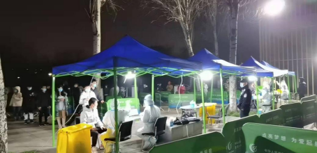 檢測過程中,所有檢測人員都身著防護服,為了節(jié)約醫(yī)療物資,避免讓大家在寒風中等待,志愿者幾乎不吃飯、不喝水,連續(xù)工作直到檢測結(jié)束。也正因為有了他們的堅守,西電疫情防控工作才有了堅強保障。