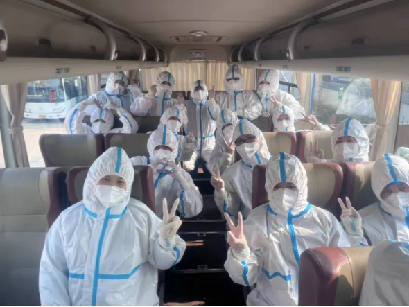 扶風(fēng)縣中醫(yī)醫(yī)院張艷艷,張會艷,馬字香,鄧文燕,朱曉敏,董曉麗,鄧乃妮,陳永會,程鵬娟,呂佩娟,王萍,孫靜靜,劉娟娟,劉鑫鑫,白珍共15名護(hù)士接到通知后,在短短30分鐘內(nèi)緊急集合完畢。這支緊急抽調(diào)的隊伍由70后的護(hù)士長、80后的資深護(hù)士、90后的臨床護(hù)理骨干組成;參加抗疫人員有的家里有面臨高考的孩子、有的還需照顧的年幼的孩子和年邁的老人;接到任務(wù),我們顧不了那么多,大家放下兒女情長、放下孝順慈愛,迎著寒風(fēng),穿上“白衣鎧甲”,短暫與家人告別后,奮不顧身的奔赴西安疫情防控的第一線。