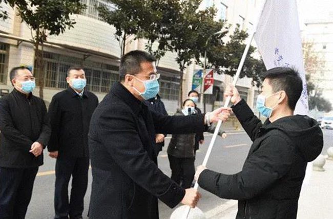 超聲科規(guī)培醫(yī)師白曉旭從院黨委副書記馮廣林手里接過隊旗時鄭重表示:“一定不負一附院培育,不畏艱險,不辱使命,嚴格規(guī)范操作,堅決完成任務。”來自西藏阿里地區(qū)委派的2名住培醫(yī)師晉美加措和米瑪占堆也毅然加入到了這場抗疫阻擊戰(zhàn)中。