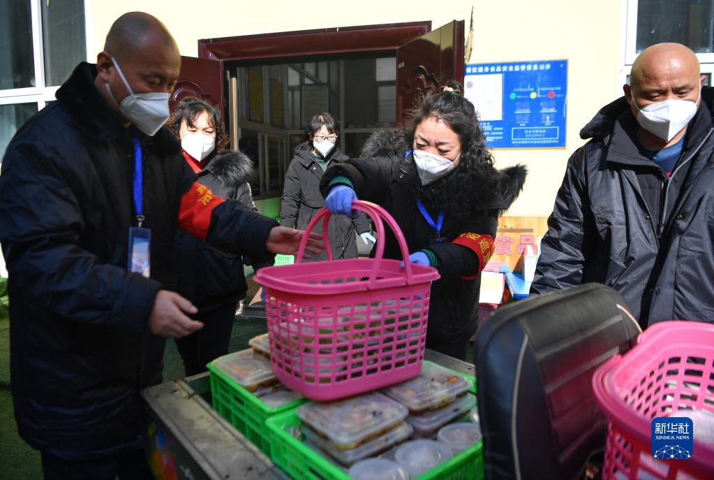 1月12日,三家村工作人員將打包好的午餐裝車準備派送。新華社記者 張博文 攝