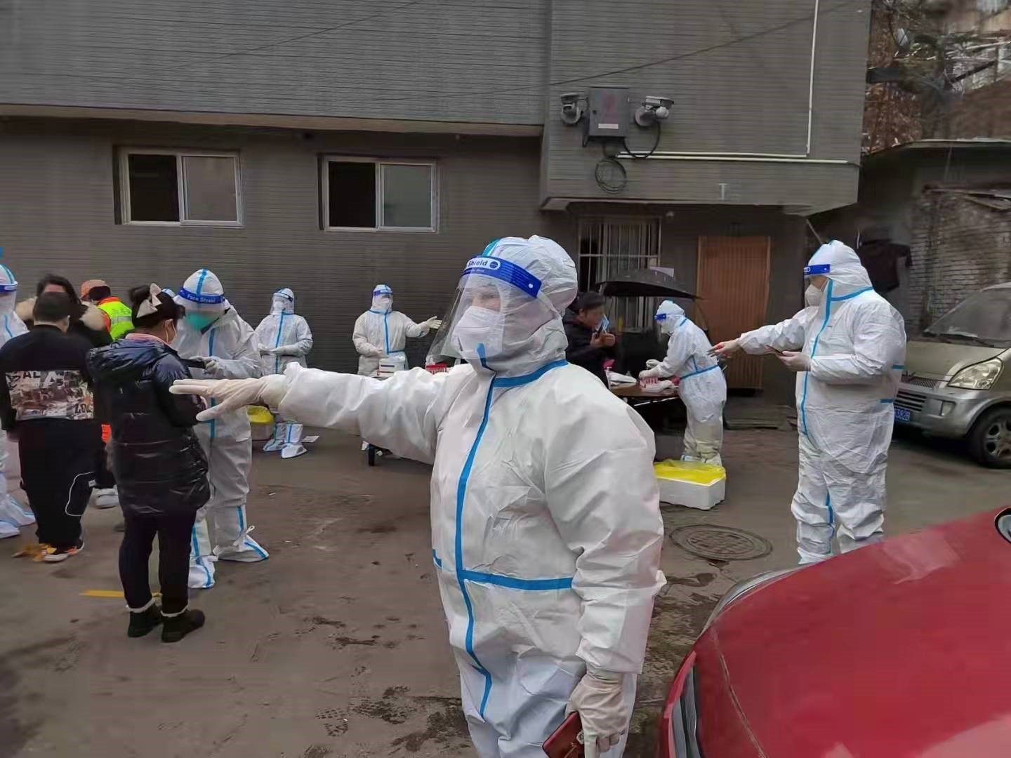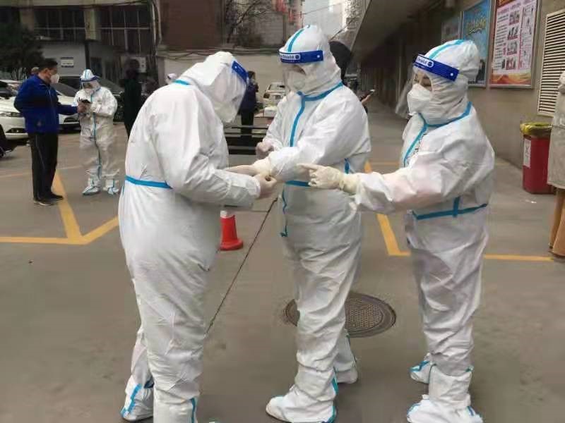 第二天一早,趙惠霞早早趕去碑林區(qū)文藝路街道文北一社區(qū)報道,開始了她志愿者生活。因為防護服一旦脫下就會報廢,采集核酸樣本的醫(yī)護人員和志愿者為了不上廁所,都不敢吃飯、不敢喝水,堅持到做完核酸才能吃飯。趙惠霞第一天下班回到家后,胃口大開,一個大暖瓶的水都喝光了。