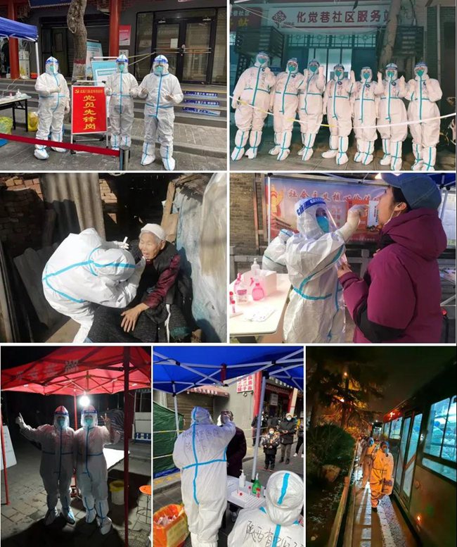 這段時期,他們完成了一個又一個看似不可能完成的任務。零點,工作群里的信息響了,通知6點出發(fā)深入4個社區(qū)開展3萬人的采樣;8300人次采樣,三個小時內結束;4725人次核酸采樣,在跨年夜連夜完成……任務急難險重,但他們邁起前進的腳步,全力以赴奔向一線。